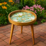 Our Green Floral Handmade Resin Side Table isn’t just furniture — it’s a piece of art. The floral enamel top brings color and character to your space, while the hand-turned wooden legs add an earthy, organic charm. Designed for modern homes that value craftsmanship, sustainability, and aesthetics, this table blends beautifully with boho, modern, or eclectic décor styles.