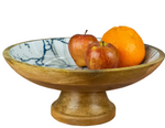 Stylish Wooden Pedestal Bowl – Handcrafted Solid Wood Centerpiece with Elevated Base (Blue)